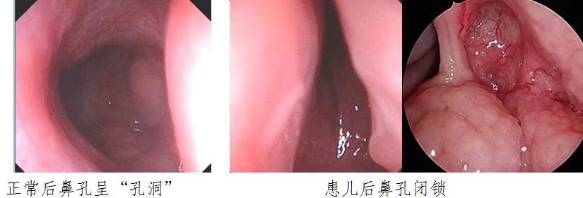儿童先天性后鼻孔闭锁是一种少见的先天性鼻部畸形,分为骨性闭锁、膜性闭锁、混合性闭锁。其中骨性闭锁较为常见,是胚胎发育异常导致后鼻孔无法正常通畅,患儿鼻腔通气受阻,出生后就会出现相应症状。