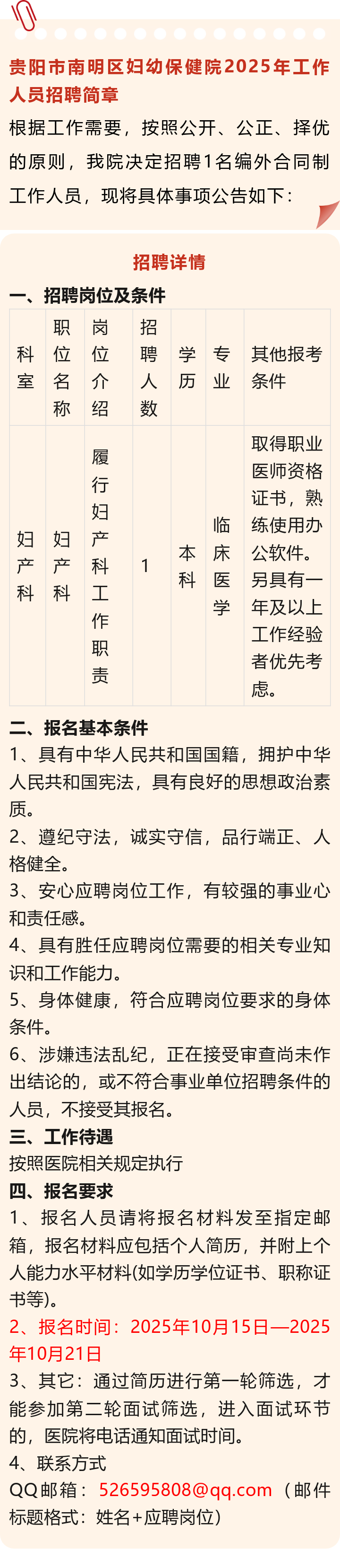 【事业单位】贵阳市南明区妇幼保健院招聘!报名截止时间:2025年10月21日!