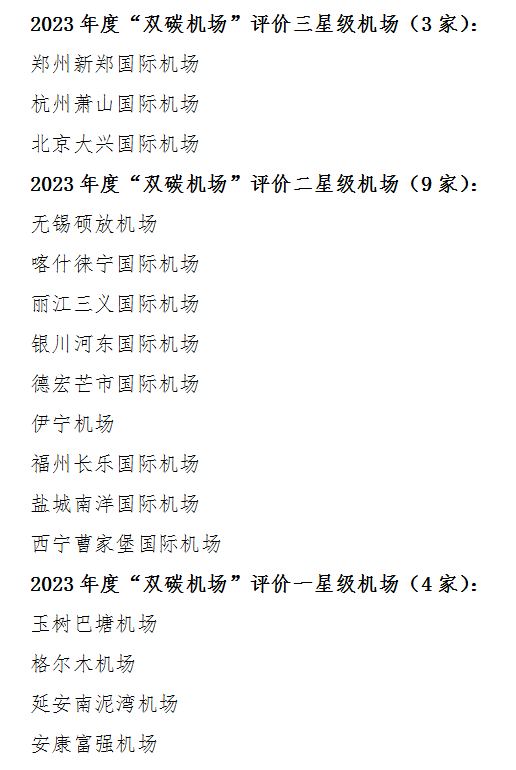 2023年度“双碳机场”评价结果。(图片由中国民用机场协会提供)