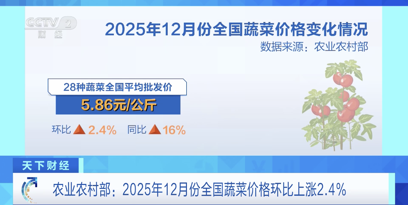 农业农村部:2025年12月份全国蔬菜价格环比上涨2.4%