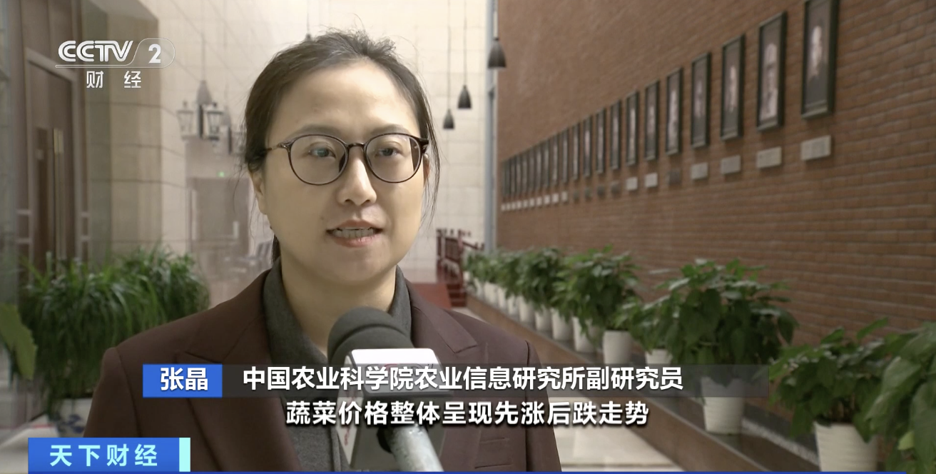 中国农业科学院农业信息研究所副研究员 张晶:今冬气温总体偏高,有利于南方蔬菜生产和北方设施蔬菜生长,前期受灾影响的蔬菜产能基本恢复,后期供应链衔接趋于平稳顺畅。预计后期菜价短期稳中有降,尤其是叶类菜和大宗蔬菜,价格将稳中有降。