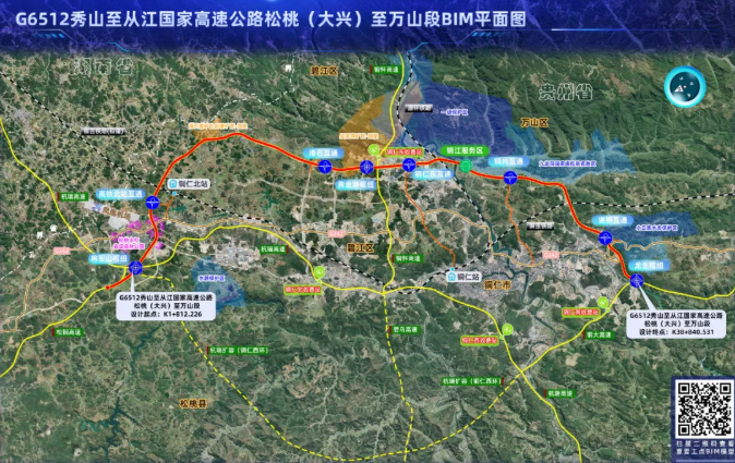 G6512秀山至从江国家高速公路松桃(大兴)至万山段项目北接松铜高速将军山互通,南联铜大高速龙生特大桥,途经松桃、碧江、万山三个区县,大兴、滑石、川硐、灯塔、谢桥五个乡镇,项目全长37.2公里,双向四车道,设计速度80公里/小时,路基宽度25.5米。项目全线设置高铁北站、滑石、铜仁东、铜兴、谢桥5处落地互通及12公里连接线。项目建设期三年,总投资估算70.52亿元(其中争取到交通运输领域重点资金22.3亿元)。项目建设对完善国家公路网规划、优化区域网络布局、加强铜仁城区过境交通转换及带动沿线社会经济发展,均具有重要意义。