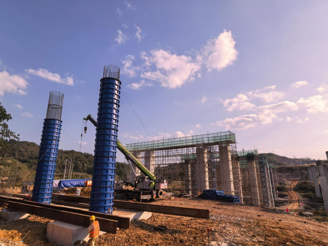 主体工程:全线共计批复先期开工点28个,正在有序推进中;路线主线长度37.039公里,截至目前路基启动施工19.5公里,土石方工程已完成49.2万方,路基填方完成15.5万方;主线桥梁23座,桥梁工程开工8座,累计完成桩基157根,T梁完成2片;全线隧道共计2座,主线石竹村隧道459米,已完成边仰坡施工正在进行套拱施工。