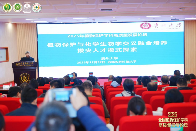 12月22日上午,2025年全国植物保护学科高质量发展论坛大会在西北农林科技大学举行,贵州大学校长宋宝安院士应邀出席,并以“植物保护与化学生物学交叉融合培养拔尖人才模式探索”为题作主旨报告。