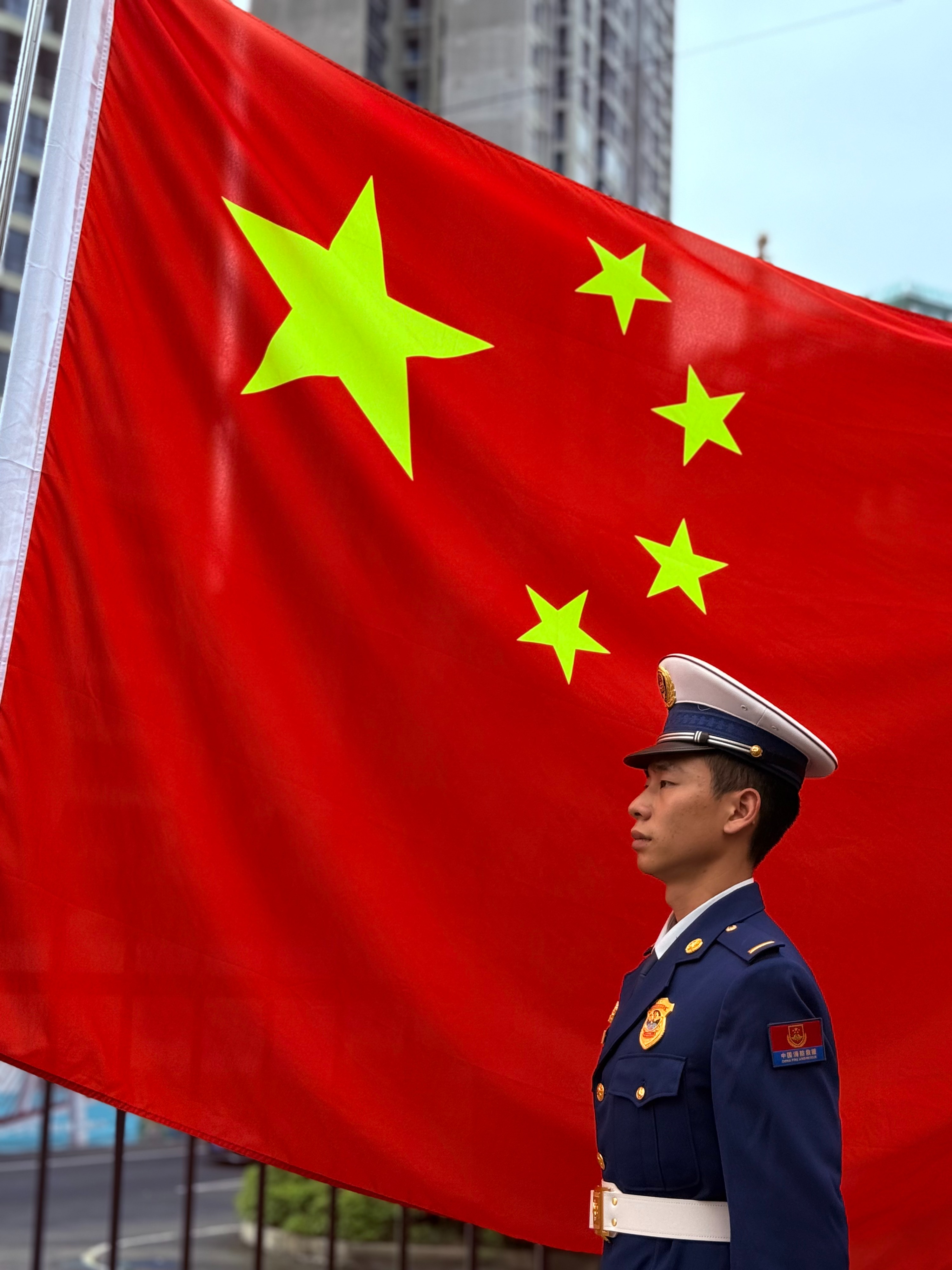 建国76周年的这天,南明大队指战员们开展“我与国旗合影”活动,向祖国深情告白,凝聚战斗力,时刻牢记重任在肩。