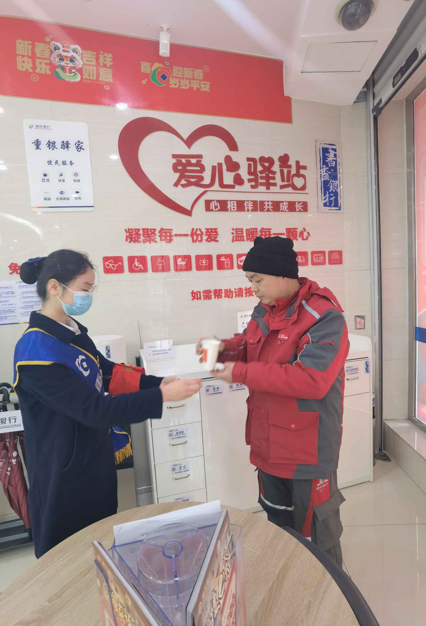 室外气温乍暖还寒,重庆银行贵阳云岩支行爱心驿站内却暖意融融。