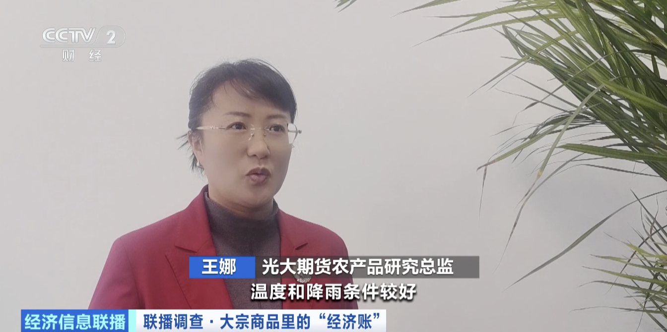光大期货农产品研究总监 王娜:今年东北大豆主产区、温度降水等生长条件良好,大豆单产高,大豆总产量继续增加,预计11月下旬至12月初,大豆价格稳中偏强。