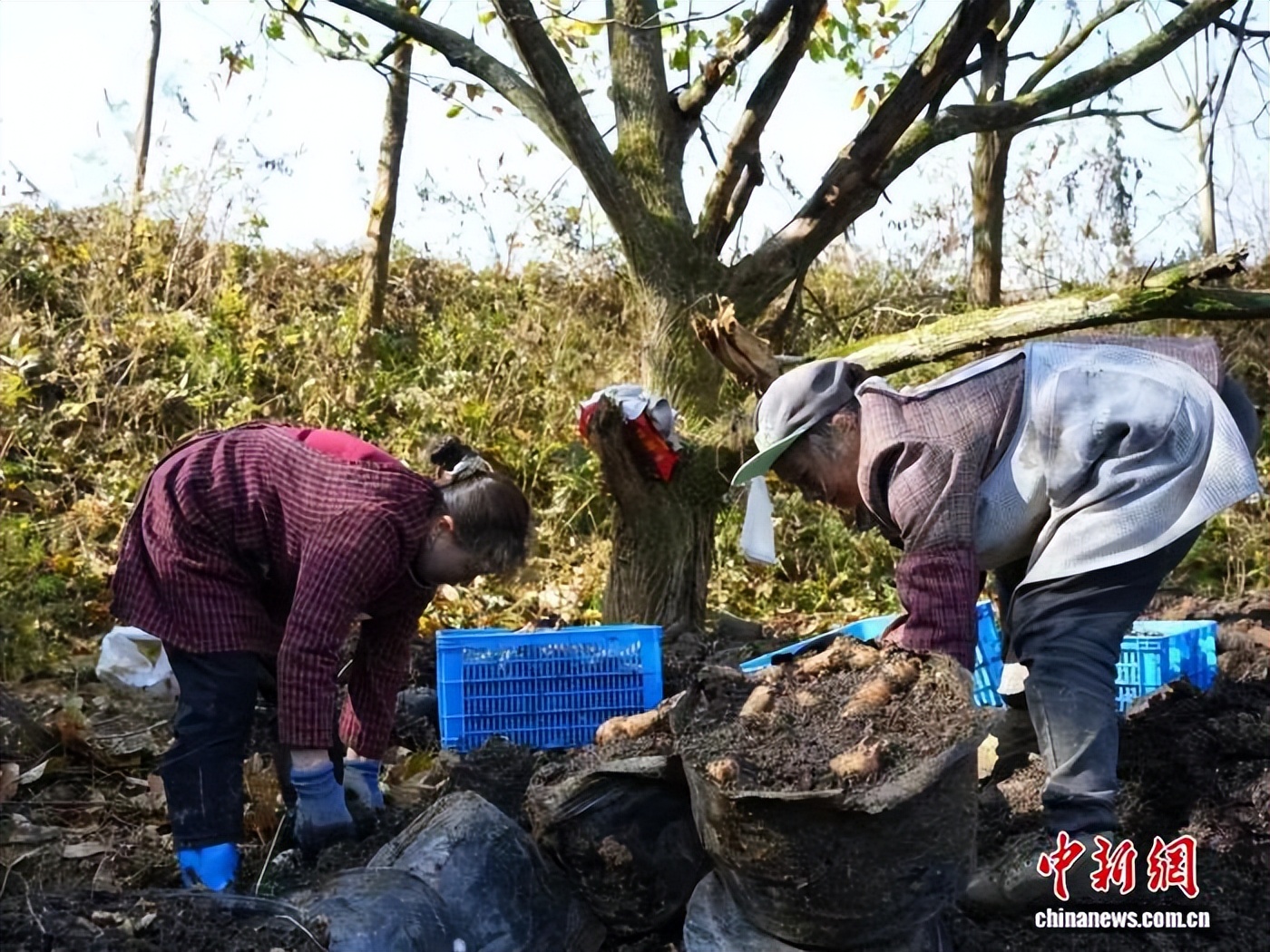 图为贵州省德江县的农户在采收天麻。(德江县融媒体中心供图)