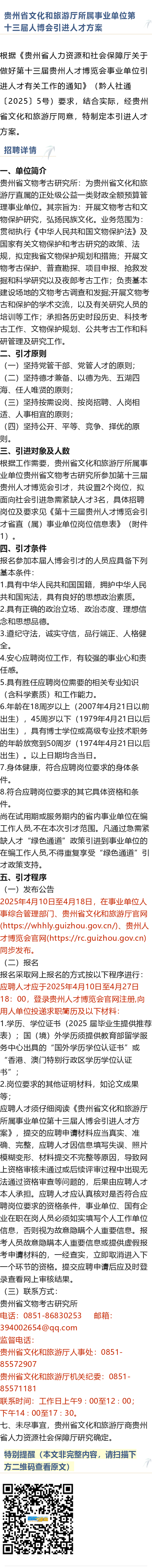贵州省文化和旅游厅所属事业单位招聘!报名截止时间:4月27日!