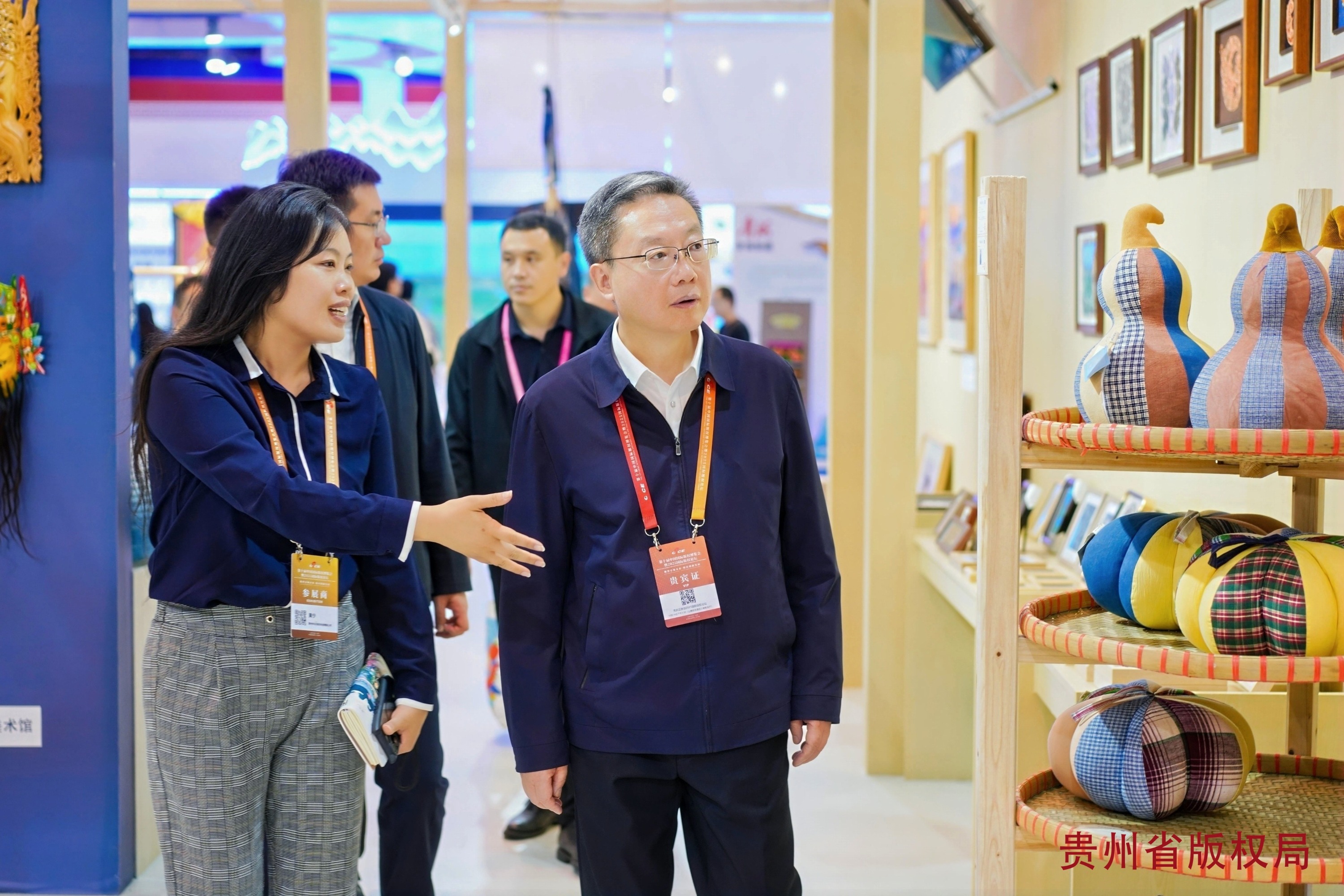 中宣部版权管理局副局长汤兆志陪同国际版权论坛嘉宾参观了贵州展馆。
