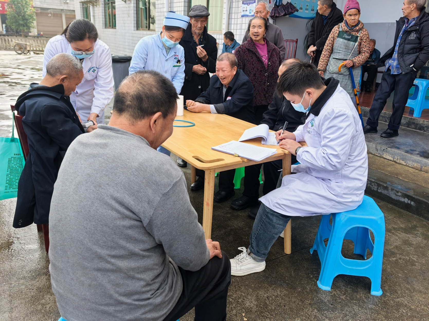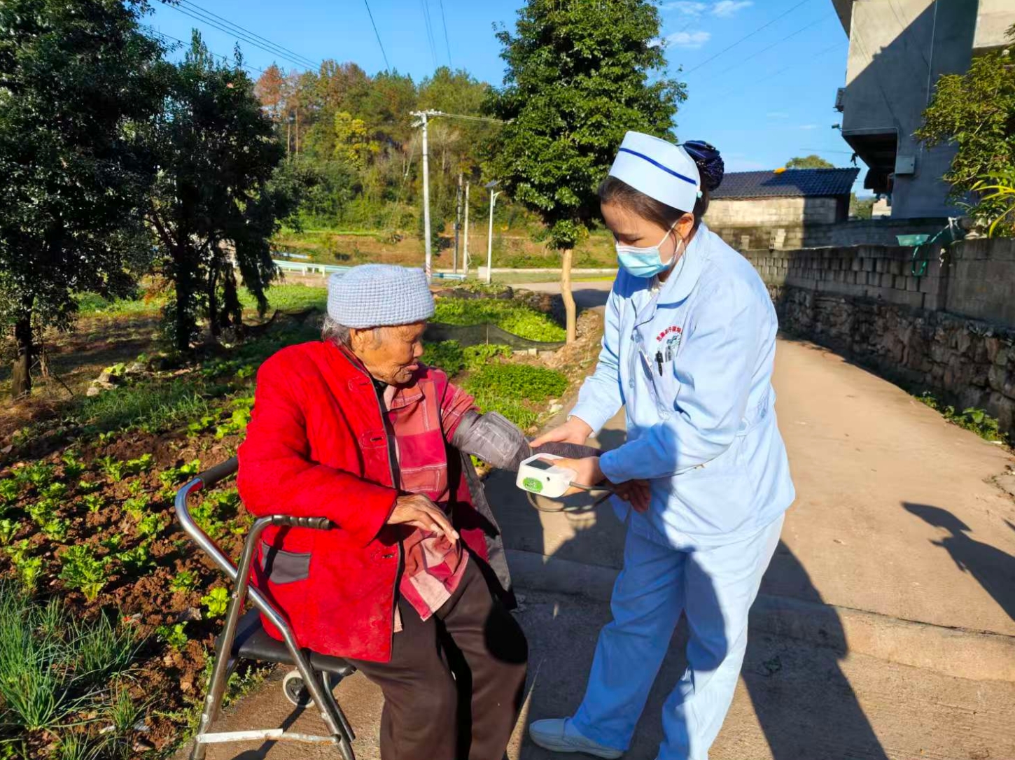 上门服务中,不仅为老人开展血压、血糖等常规检测,更提供精准性的健康指导。瓮溪镇竹山村77岁的徐忠辉,身患原发性高血压与化脓性关节炎,镇卫生院医生定期上门为其开展关节灌洗治疗,监测血压变化,针对其多药同服的安全隐患,梳理用药清单并向家属详解用药及饮食要点。“儿子们都不在家,要是没有你们定时上门医治,他还不知道要痛成什么样,太感谢你们了!”徐忠辉的老伴满心感激地说。