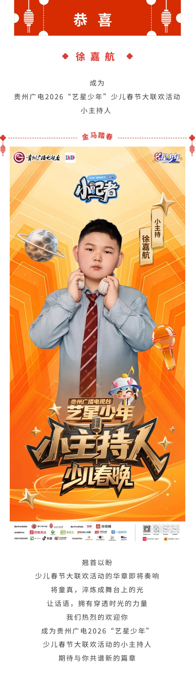 徐嘉航 | 贵州广电2026“艺星少年”少儿春节大联欢活动小主持人!
