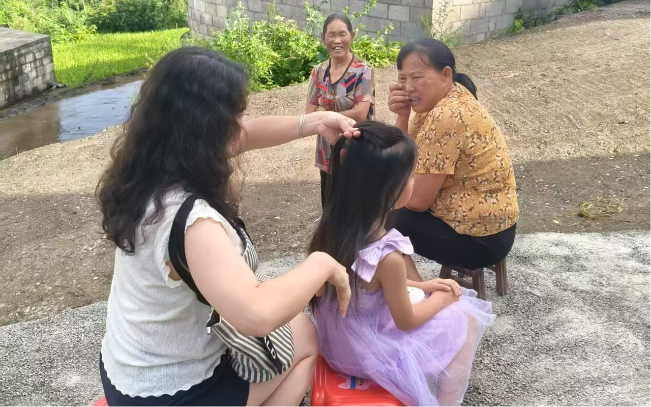 产业发展是江玲工作的核心。她深入调研村情,与村 “两委”、村民代表共同探讨农旅融合发展路径,积极联系果农技术专家进村开展指导,尝试通过电商平台拓宽白茶、蜂蜜等农特产品销售渠道。针对暗塘村 120 亩蜂糖李因缺乏技术导致颗粒无收、300 亩饲草受病虫害影响长势不佳的问题,她第一时间向学院申请技术支持,全力破解产业发展瓶颈,为村集体经济增收注入动力。
