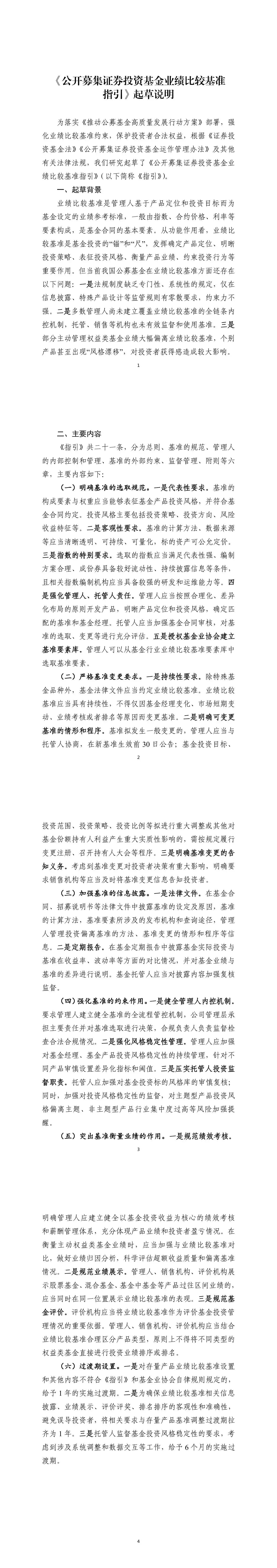 《公开募集证券投资基金业绩比较基准指引》及起草说明全文如下: