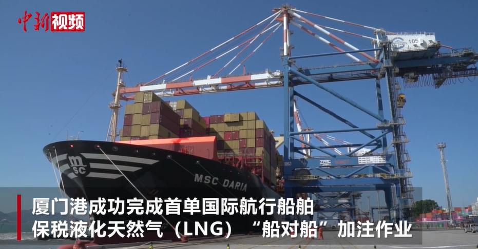 近日,厦门港成功完成首单国际航行船舶保税液化天然气(LNG)“船对船”加注作业。