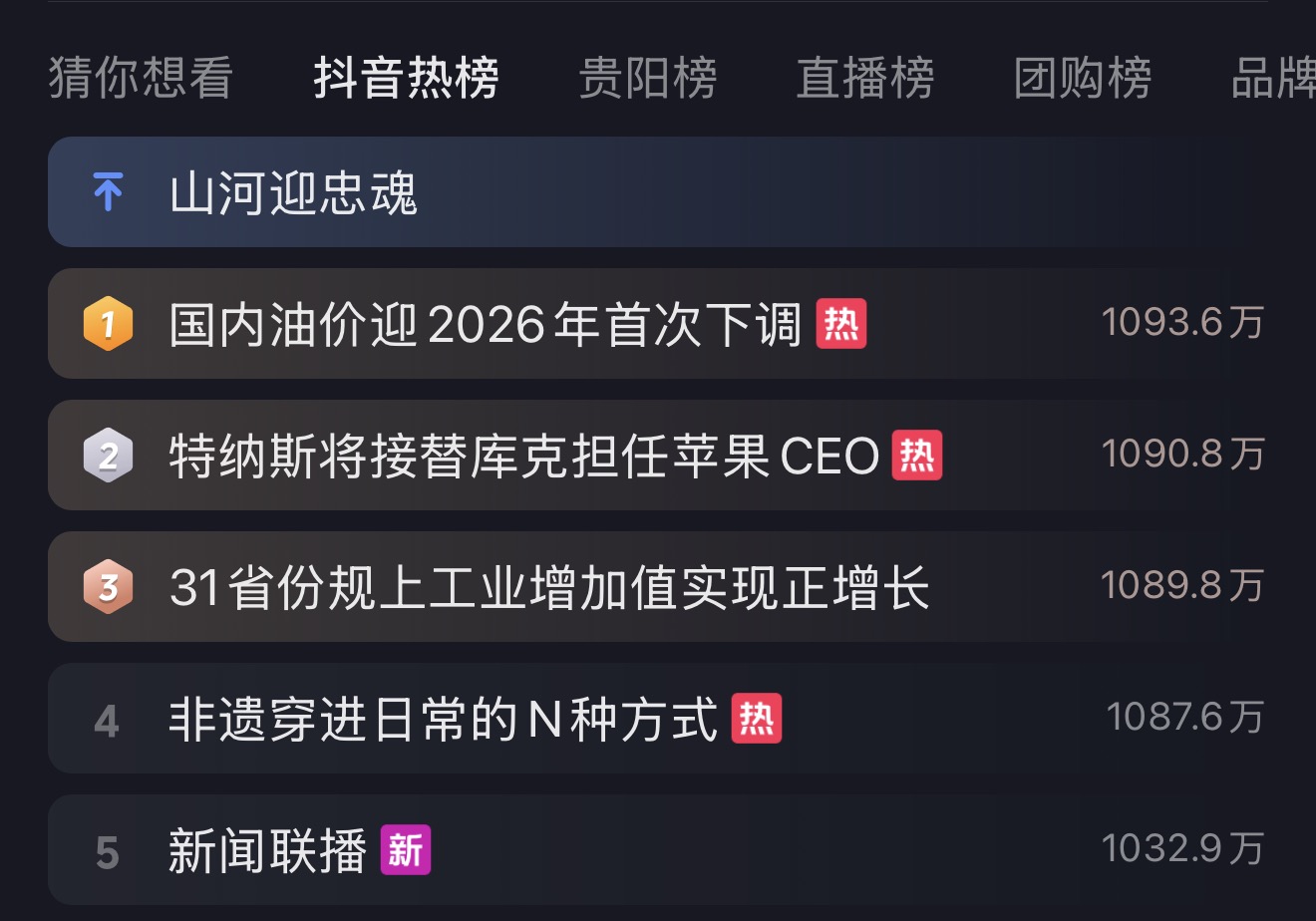 打开动静新闻客户端,刷动静听新闻。社交媒体热点打捞,洞悉社会情绪,最后来看各大热榜,明天再见!