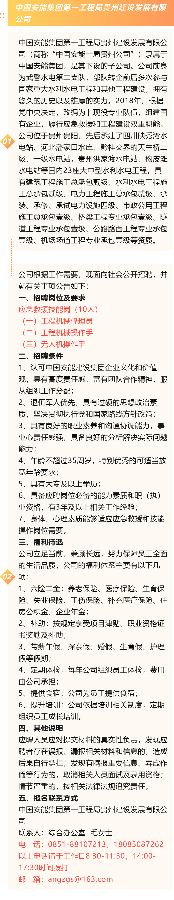【国企】中国安能一局贵州公司招聘10人!大专起报!六险二金+提供食宿!