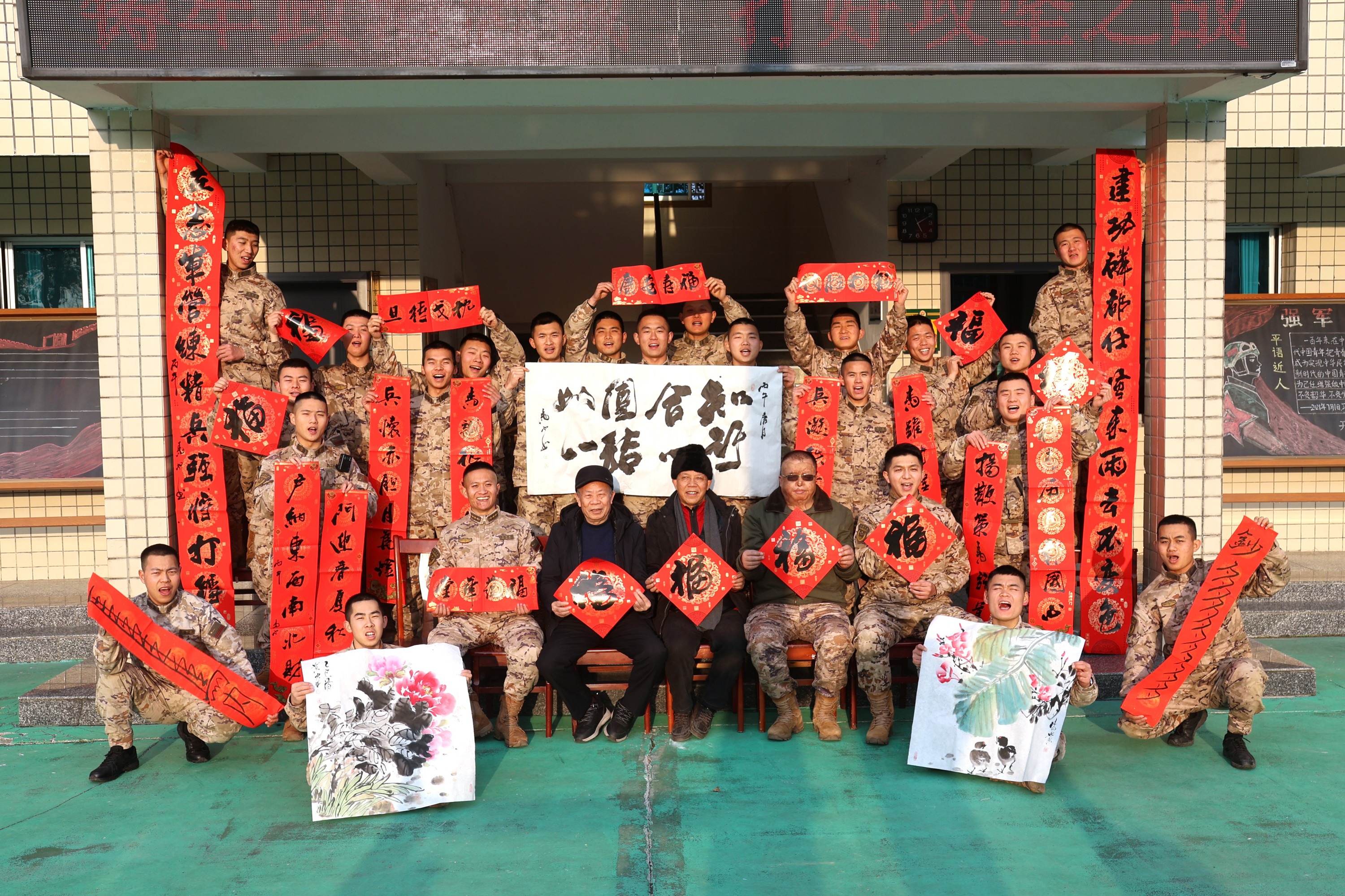 创作过程中,官兵们兴致高昂地围在老师身旁,或驻足观赏、啧啧称赞,或轻声交流创作心得,不时向老师请教书法运笔、绘画构图等技巧。对于官兵们提出的个性化创作需求,两位老师有求必应,量身打造专属作品。拿到承载着真挚祝福的书法春联和精美绘画后,官兵们脸上洋溢着喜悦的笑容。纷纷表示,将把这份温暖的祝福转化为练兵备战的强大动力,以更加饱满的热情、更加昂扬的斗志投入到今后的训练和工作中,切实履行好保家卫国的神圣职责。