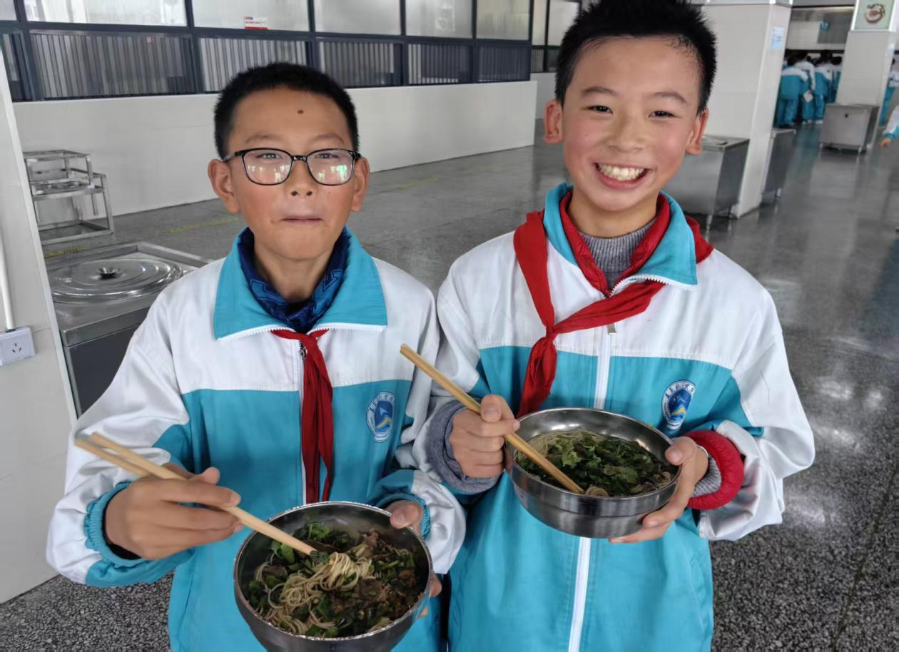 同学们有序排队领取羊肉粉,根据口味添上红油、香菜等特色佐料。温热的汤汁裹挟着筋道的米粉入口,暖意顺着喉咙蔓延至全身,瞬间驱散了冬日的寒凉。大家或围坐一桌,畅谈学习生活的趣事;或静静品味,感受节日的专属美好,一张张稚嫩的脸上洋溢着幸福与满足,清脆的笑声与美食的香气交织在一起,让校园充满了家的温馨。不少同学笑着说道:“这碗羊肉粉暖到了心坎里,让我们在学校也感受到了过节的热闹和温暖!”