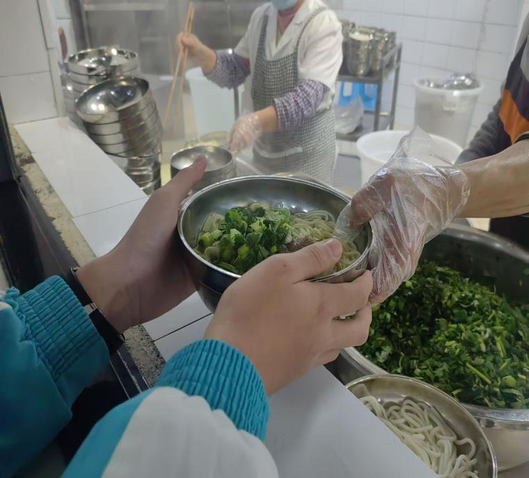 为了让这份暖意精准传递、不打折扣,学校领导们全程统筹部署,各部门协同发力:从黔北新鲜羊肉的严格甄选,到本地优质米粉的细致挑选,再到鲜香汤汁的慢火熬制,每一道工序都凝聚着对学子的牵挂;安全保障覆盖食材检验、就餐防护等全环节,只为将最纯粹的关怀藏进一碗午餐时分,食堂内香气氤氲,暖意融融。