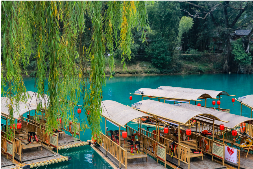 位于黔南州罗甸县城东北部的大小井景区褪去了夏天的暑热,变得温婉动人,翡翠色的溪流变得更加清澈,游客们乘坐竹筏泛舟于翠绿色河水中,观赏两岸茂密的竹林、古老的布依族村落以及鳞次栉比的精品民宿,感受暖冬里恬静的田园生活。景区积极探索新玩法,在河边设置“水上秋千”项目,乘坐“水上秋千”荡漾于碧波之上,用全新角度发现大小井的别样之美。