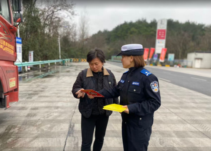 近日,贵阳交警高速支队四大队走进龙洞堡服务区,面向停车休息的驾乘人员开展交通安全精准宣传活动,紧扣夜间出行安全重点,从源头预防和减少道路交通事故发生,为群众出行保驾护航。