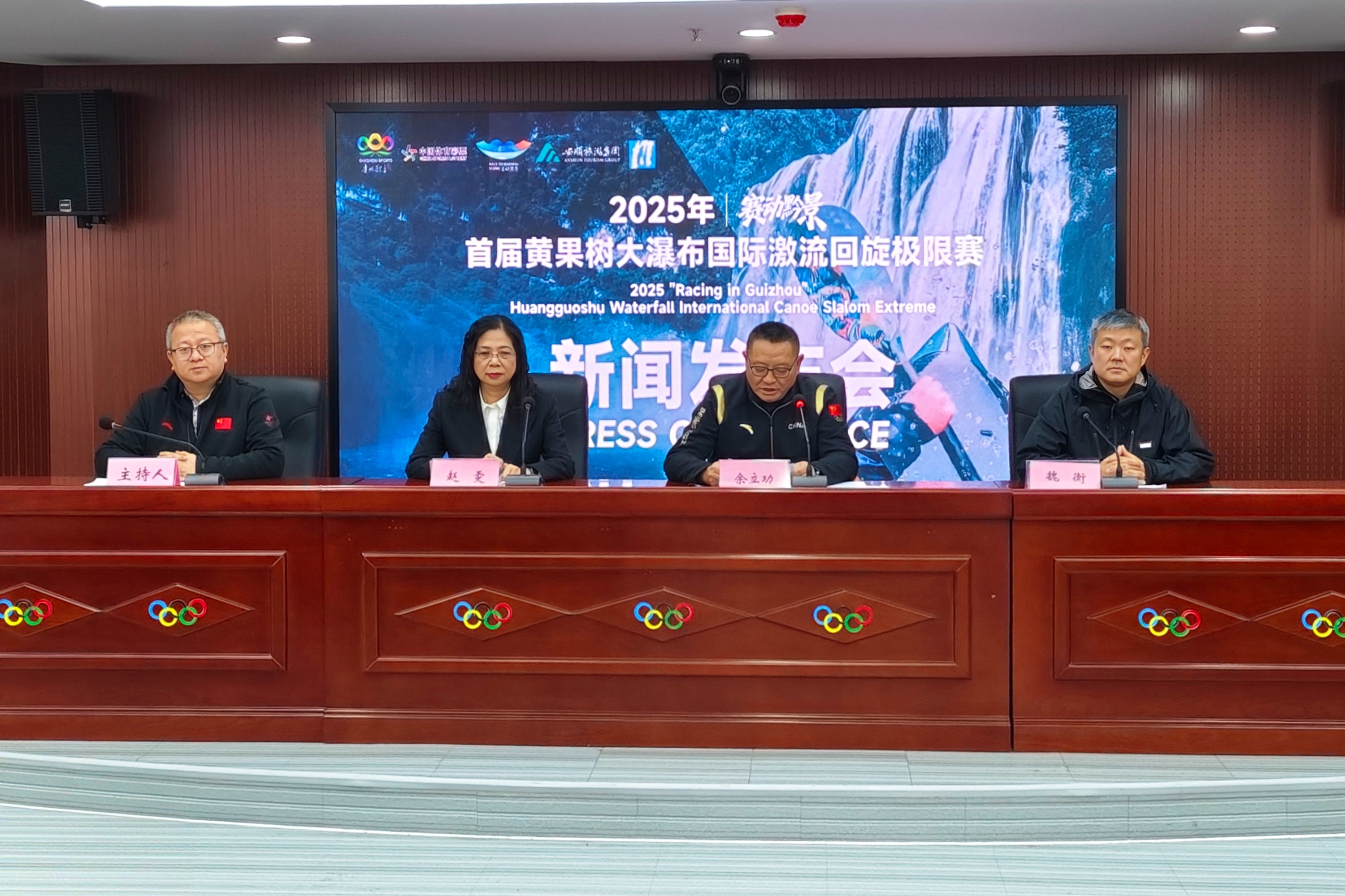 10月22日,2025年“赛动黔景”首届黄果树大瀑布国际激流回旋极限赛新闻发布会在省体育局举行。会上介绍了赛事组织、赛道规划、体旅活动等相关情况。