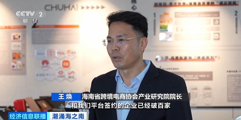 海南省跨境电商协会产业研究院院长 王焕:和我们平台签约的企业已经破百家,截止到11月份,这些企业当中已经有20多家给海外仓发货,实现业务成交。从内地来的50多家工业类和农业类的企业,也在我们平台注册了它们在海南的出口贸易公司。可见这样一个生态对带动整个中国的工业链条、农业链条,通过海南出海起到了非常积极的作用。