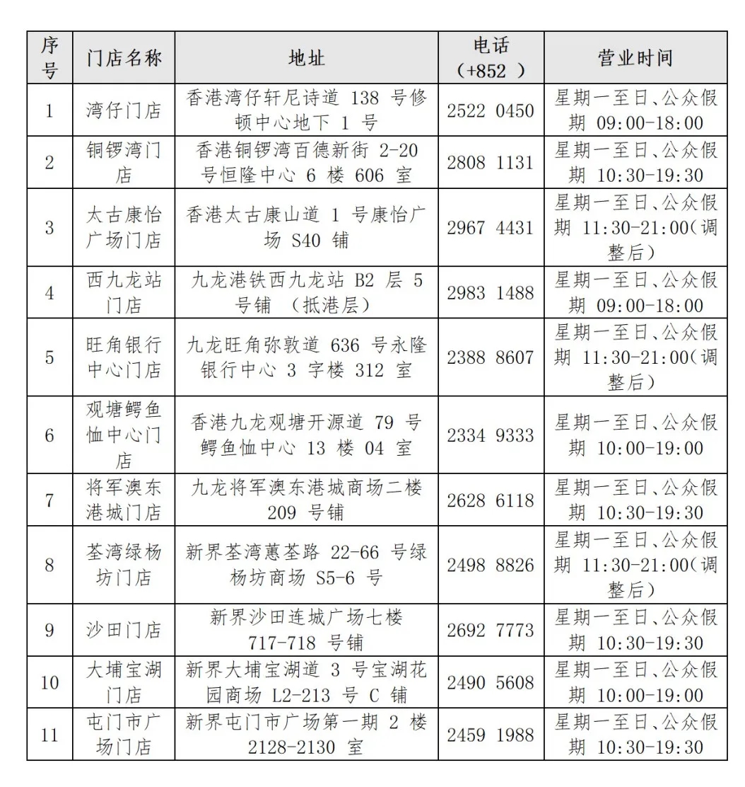 香港中国旅行社11家网点信息(仅销售香港赛区门票)