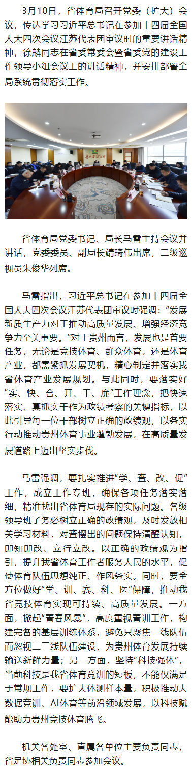 树立正确政绩观 落实“实、快、合、开、干、廉”|省体育局召开党委(扩大)会议