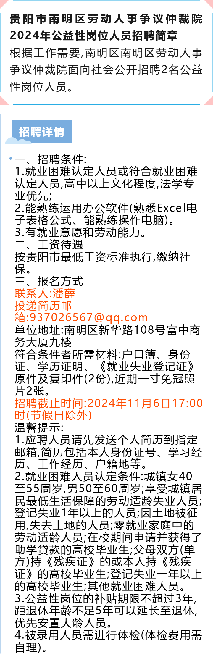 【事业单位】贵阳市南明区劳动人事争议仲裁院招聘!招聘截止时间:2024年11月6日!