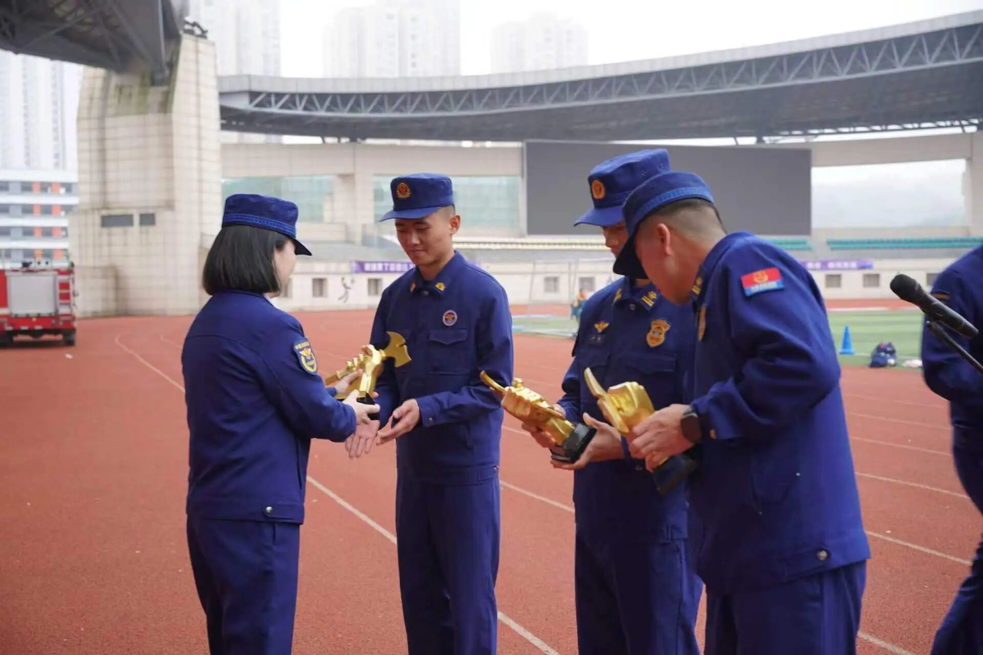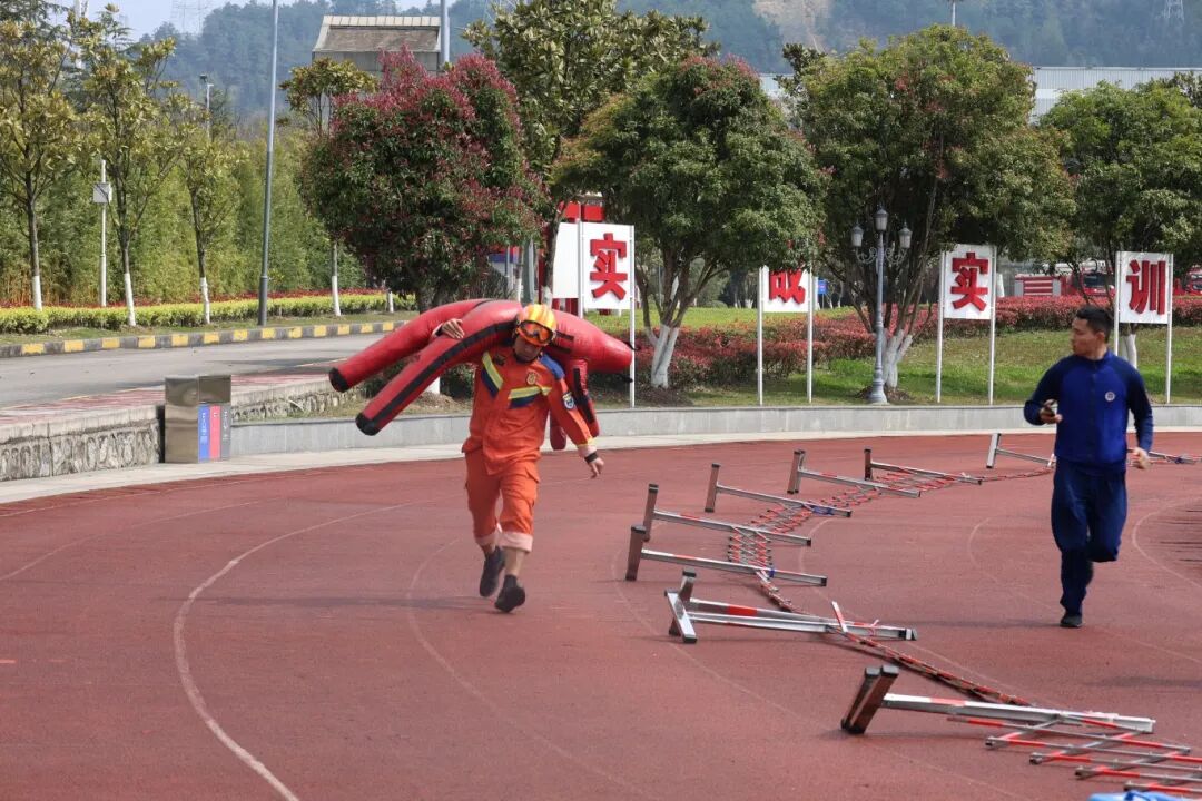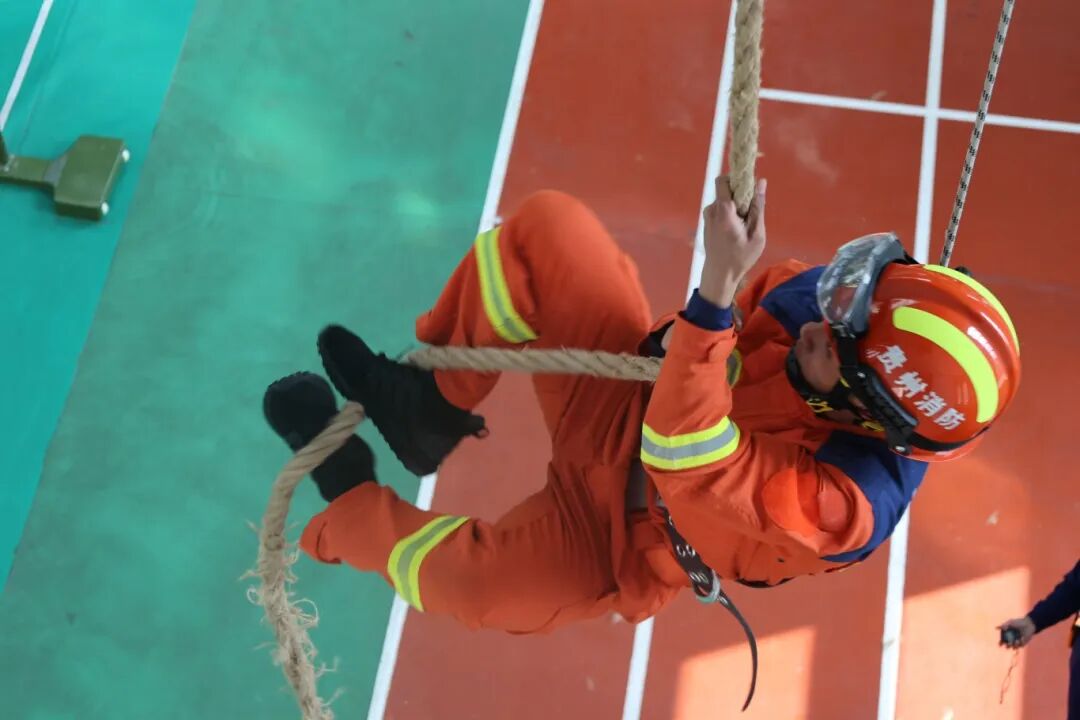 竞赛设置3000米跑(1500 米)、2 分钟立卧撑(平板支撑)、4 楼绳索攀爬、负重上10楼、防盗门破拆操、枪炮协同灭火操等多个科目,全面检验指战员体能、技能及协同作战能力。赛场上,参赛指战员全力投入比拼,裁判组严格按规程计时计分,保障赛事公正公开。