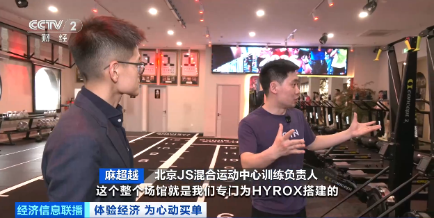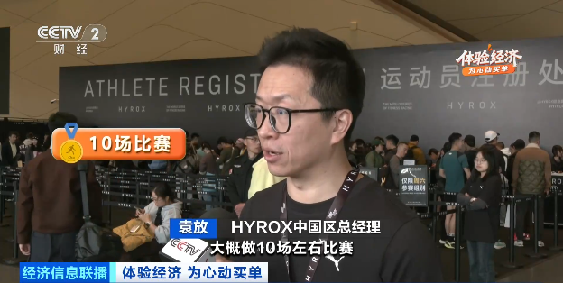 总台央视记者 苏童:场上绝大多数的“运动员”,实际上都是生活中最普通的健身爱好者,他们付费来参加这场比赛,不只是为了成绩和奖牌,更多的是感受这里的氛围,突破自己的勇气,还有收获一段拼搏故事。HYROX提供的不只是一段比赛,更是一场体验,以及围绕这个体验不断延伸的消费链条。