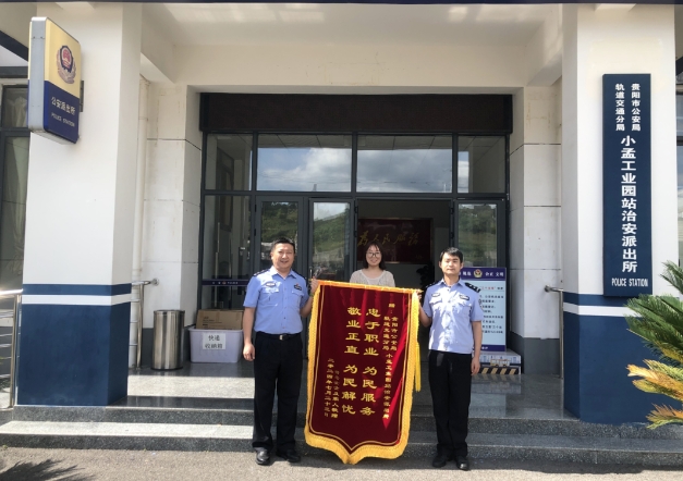 7月23日,谢女士将一面写有“忠于职业、为民服务、敬业正直、为民解忧”的锦旗送至分局小孟工业园站治安派出所,并再次对小孟所为民办小事、解难题表示赞扬。