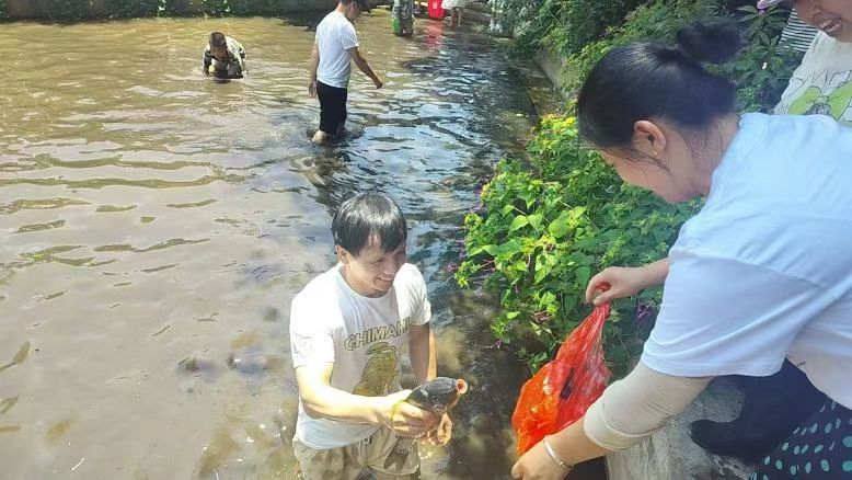 夏日午后,池塘里抓鱼活动便开始了,笑声回荡村中。大人小孩纷纷赤脚踩进池塘,泥浆从脚趾缝挤出,欢笑声炸开在水面。你扑我挡,裤腿高卷,衣袖沾泥,一条滑溜的鱼刚入手又“嗖”地溜走。竹篓里堆满战利品,也堆满了泥土里的野趣。这一刻,快乐原始而纯粹,仿佛回到童年最肆意的夏天。