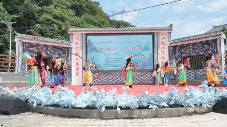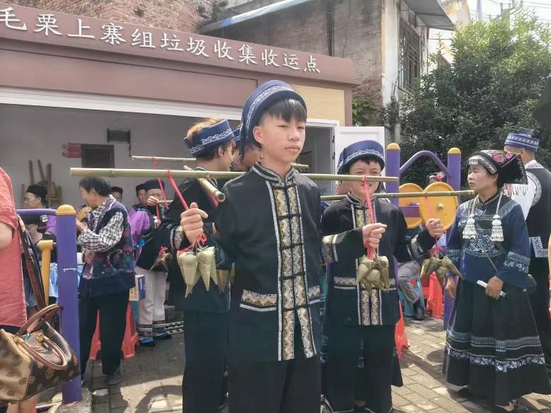 舞台上,村民们身着布依族传统服饰,自编自演的《毛栗是个好地方》缓缓响起。老艺人领唱,青年和声,舞步踏着鼓点,重现祖先翻山越岭的足迹。没有华丽绚烂的舞美,却让每一个动作都透出土地的厚重与生命的律动。