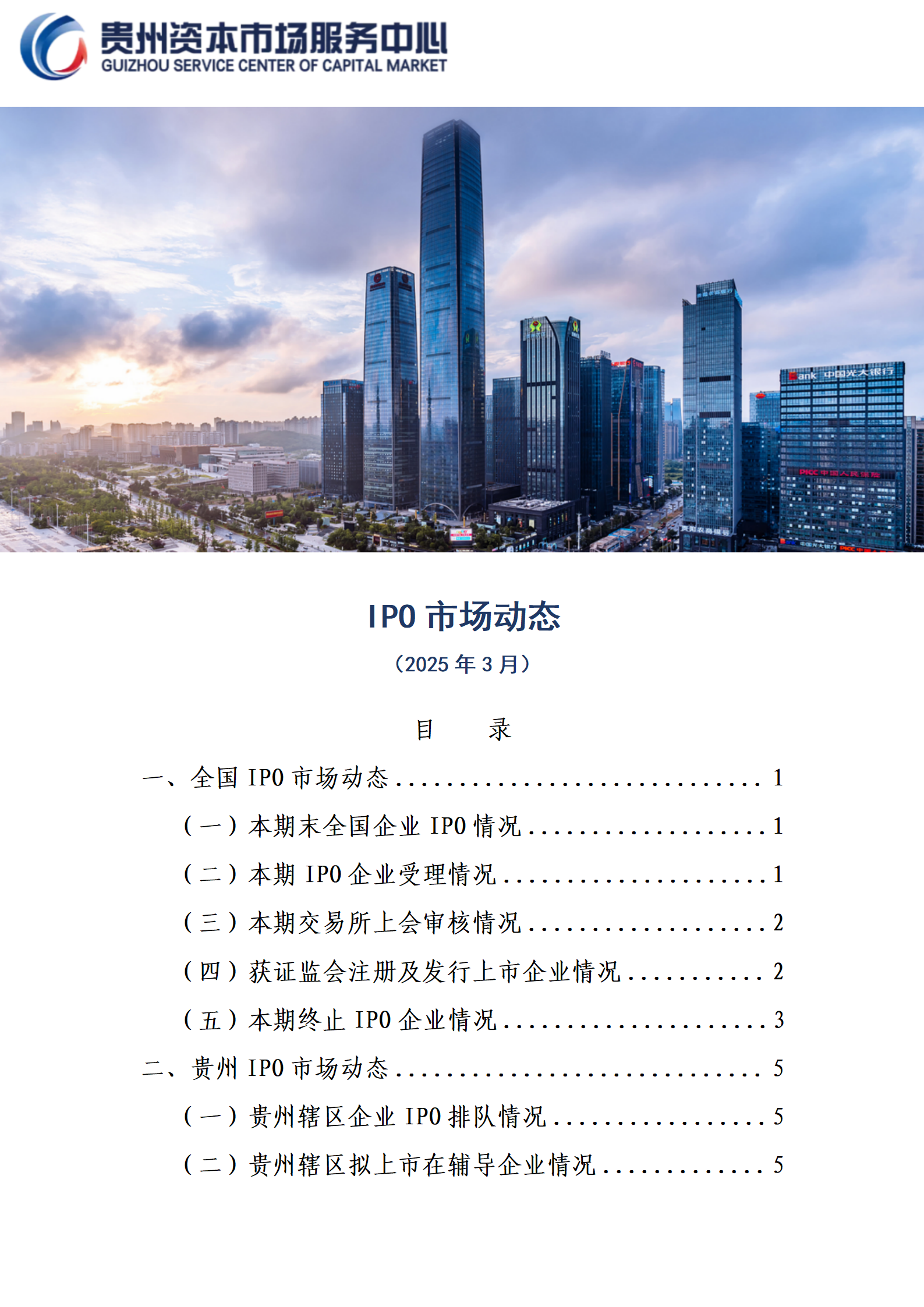 黔证资讯丨贵州资本市场月报:IPO市场动态(2025年3月)