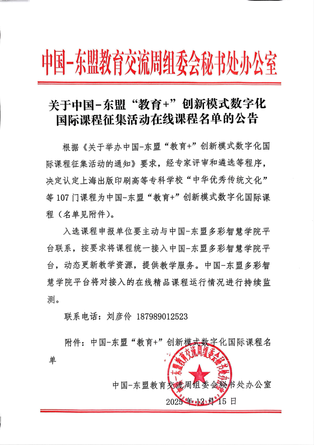 近日,中国-东盟“教育+”创新模式数字化国际课程名单正式公布。贵州电子商务职业技术学院《视觉营销设计》《家庭科学育儿》《跨境电商运营从0到1的入门课程》《市场营销》《餐饮服务与数字化运营》五门课程实力入选!