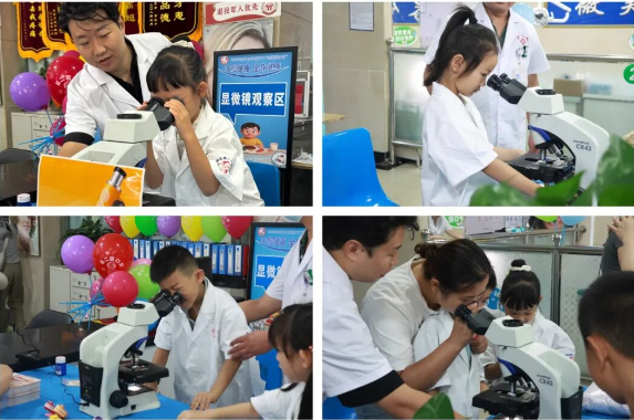 随后,孩子们还通过显微镜观察细菌形态,这一环节让他们直观认识到保持口腔卫生的重要性。