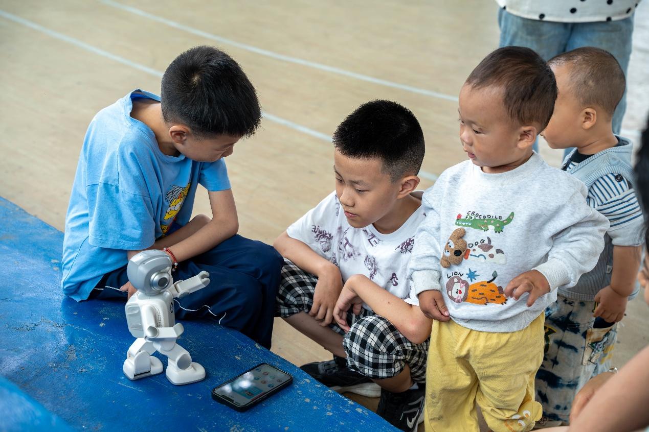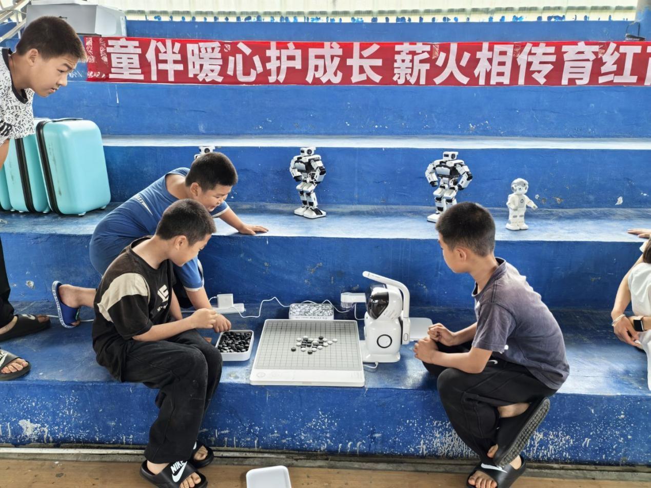 智启未来,科技赋能。针对乡村儿童科技教育资源匮乏的现状,实践团打造沉浸式智AI启蒙课堂:棋类人工智能、智能机器人等趣味互动演示AI技术的无限可能。