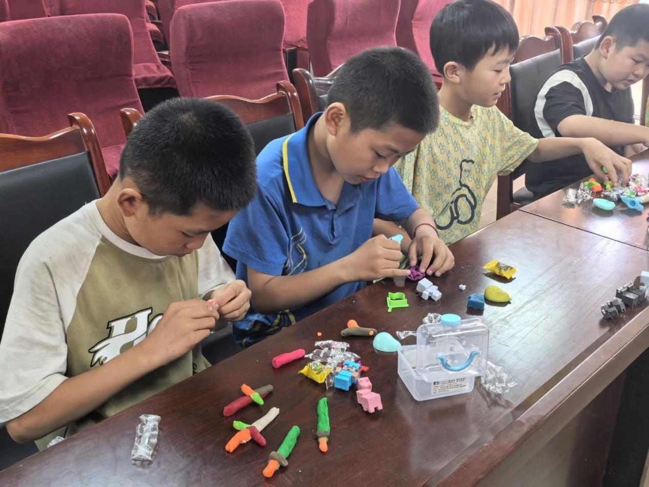 多彩手脑,艺趣融合。实践团以“动手即表达”为理念,将多彩手脑课打造成情感释放与审美培育的双重载体。通过橡皮泥捏“马刀”,“子弹”,等,让儿童了解这片土地发生过的故事。心理绘画、手操课《童心向党》、红军歌谣创编活动,艺术表达与红色传承在此刻深度交融。