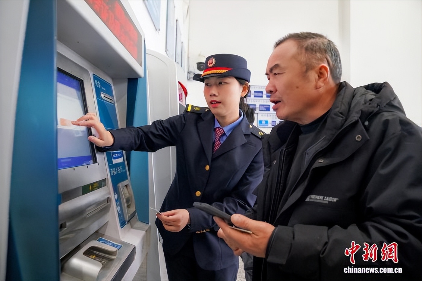 图为百色站客运工作人员帮助旅客购票出行。秦塬棋 摄
