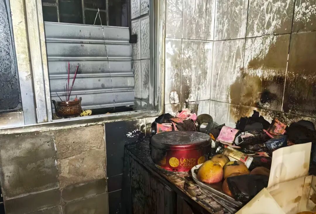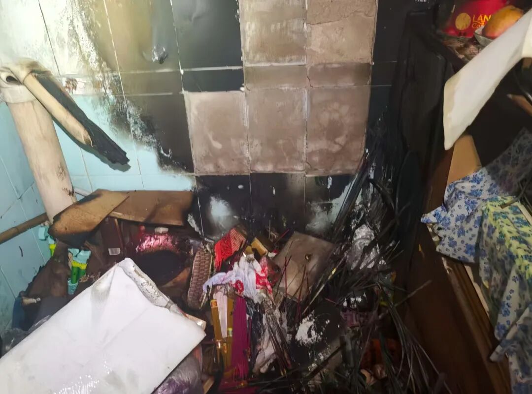 经初步排查,起火原因疑似为两名老人在家中敬神祭祖时,香灰掉落引燃纸钱及周边可燃物。因老人腿脚不便,无法自行扑救,随即拨打119报警求助。得益于报警及时、处置迅速,两名老人未受伤,财产损失得到控制。
