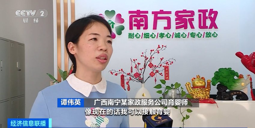 广西南宁某家政服务公司育婴师 谭伟英:现在我可以接触育婴,慢慢到月嫂,再规划到护老各方面。