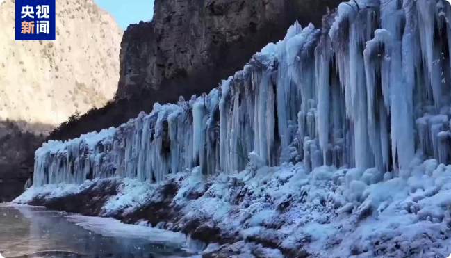 山西通天峡现冰瀑冰挂群 绵延几千米