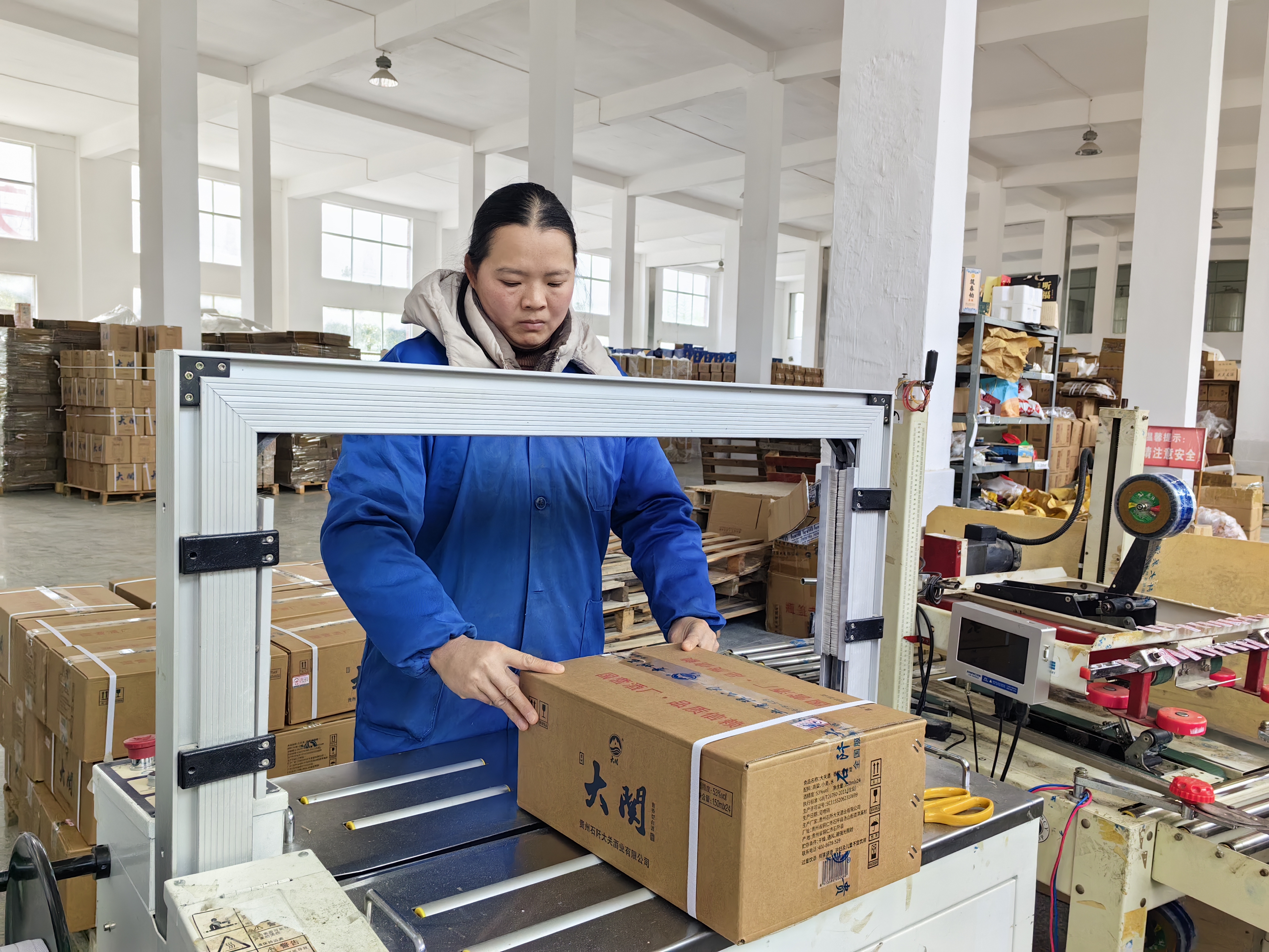 眼下,在大关酒业包装车间的老生产线上,工人们正紧张有序地包装一批批刚下线的白酒,有条不紊地进行装箱和封箱作业。而在不远处的新自动化包装线上,工作人员正加紧调试新设备,力争1月中旬投入生产。据包装车间负责人欧强介绍,这条自动化生产线的引进,离不开石阡县政府部门的“一站式”服务。
