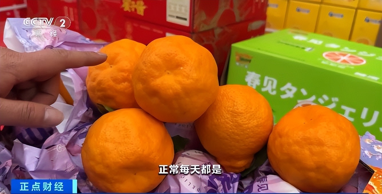 蔬菜批发商:去年砂糖橘价格每斤在三四元,今年就在两三元左右。沃柑也是一样,现在备货量每天150吨左右,走货量大概在100吨。