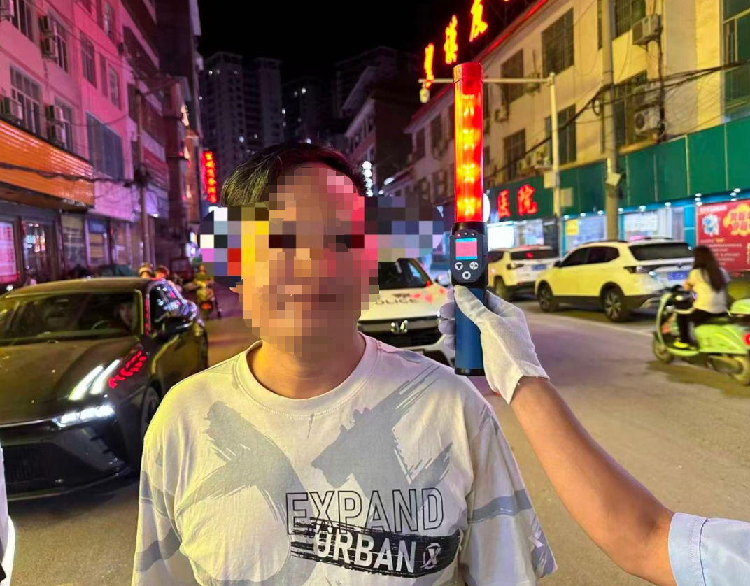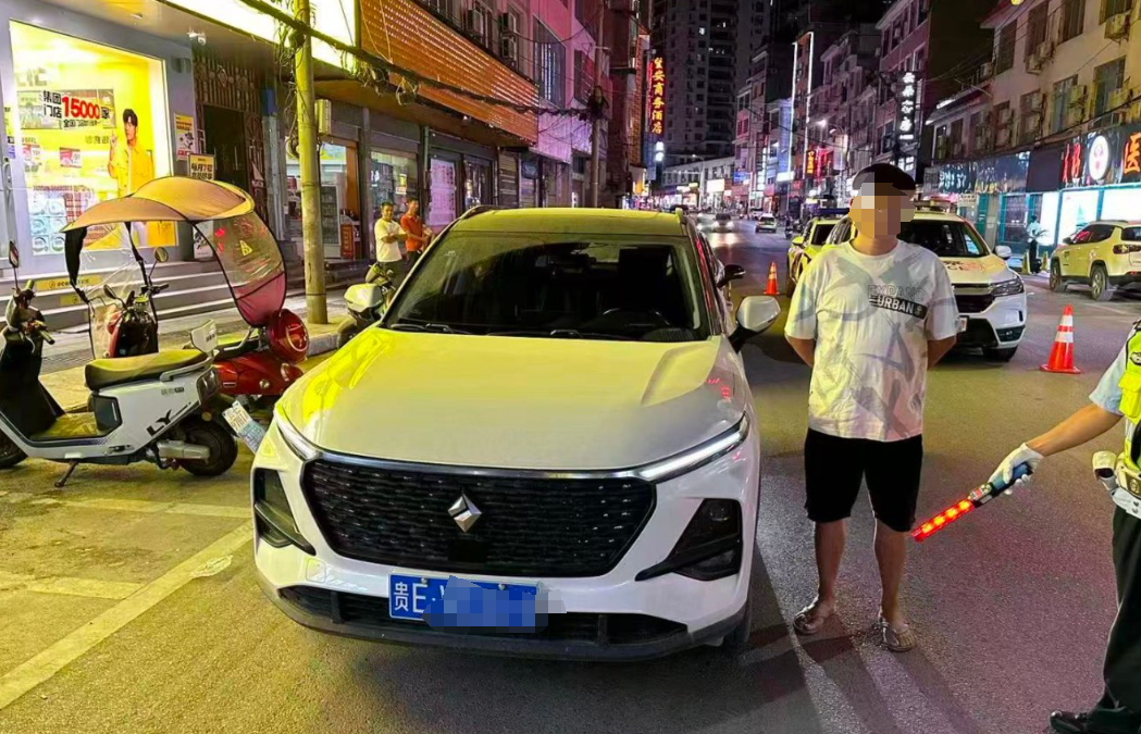 2025年9月6日21时许,黔西南州望谟县公安局交通警察大队正在团结路路段设卡开展夜查统一行动,严查各类交通违法行为。在行动过程中,一名男子驾驶一辆小型轿车行驶至查缉点时,民警对其进行依法检查,在检查过程中闻到一股酒味。