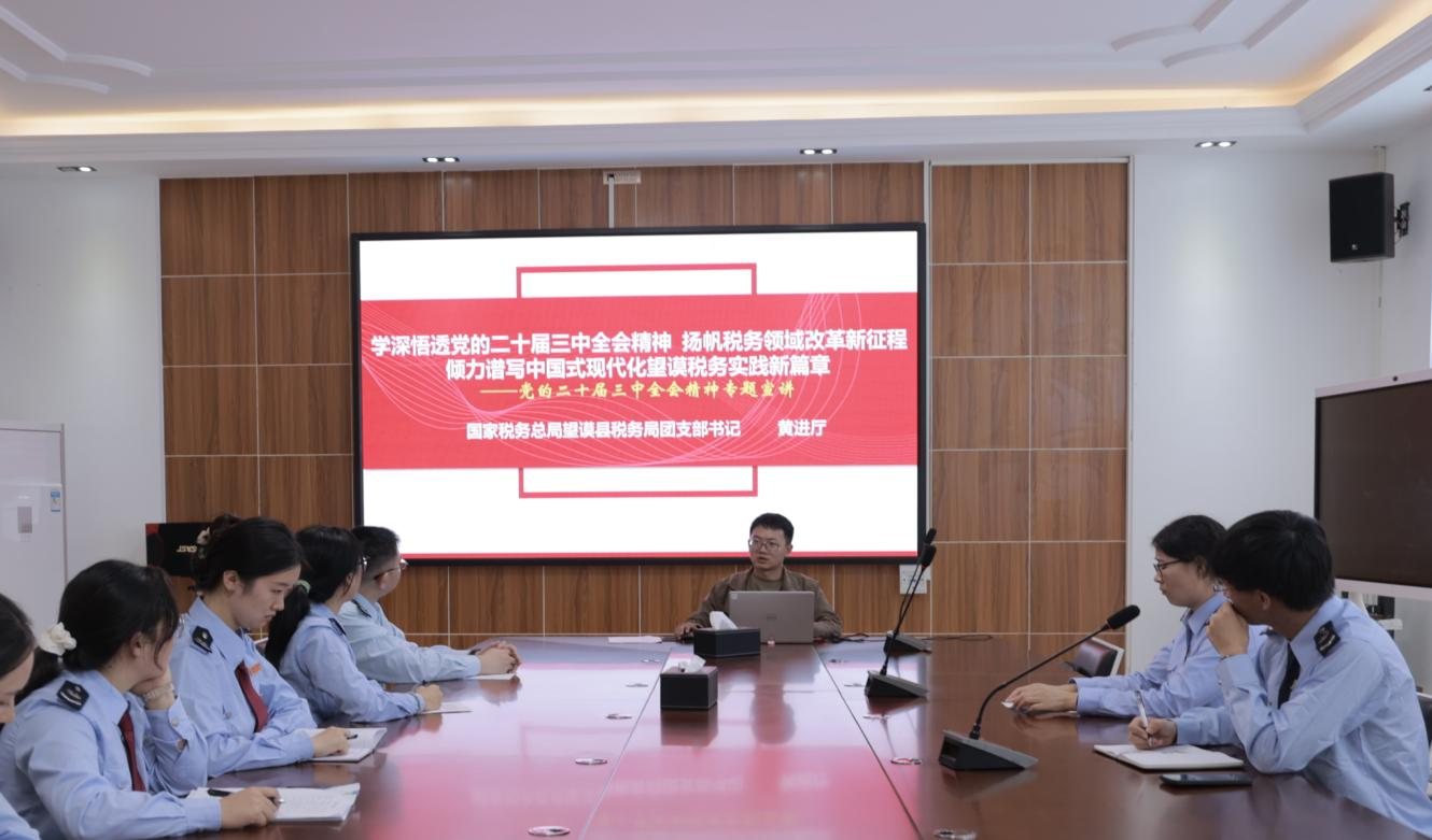 国家税务总局望谟县税务局组织开展“深入学习贯彻党的二十届三中全会精神,奋力谱写为中国式现代化挺膺担当青春篇章”主题团日活动,团支部书记为青年团员们带来了一堂党的二十届三中全会精神专题讲座,现场学习氛围浓厚,在交流发言过程中,青年团员们相互学习、相互启发,以饱满的热情和积极的态度参与其中,进一步拓展了自己的思维和视野,展现出了新时代税务青年的风采与担当。