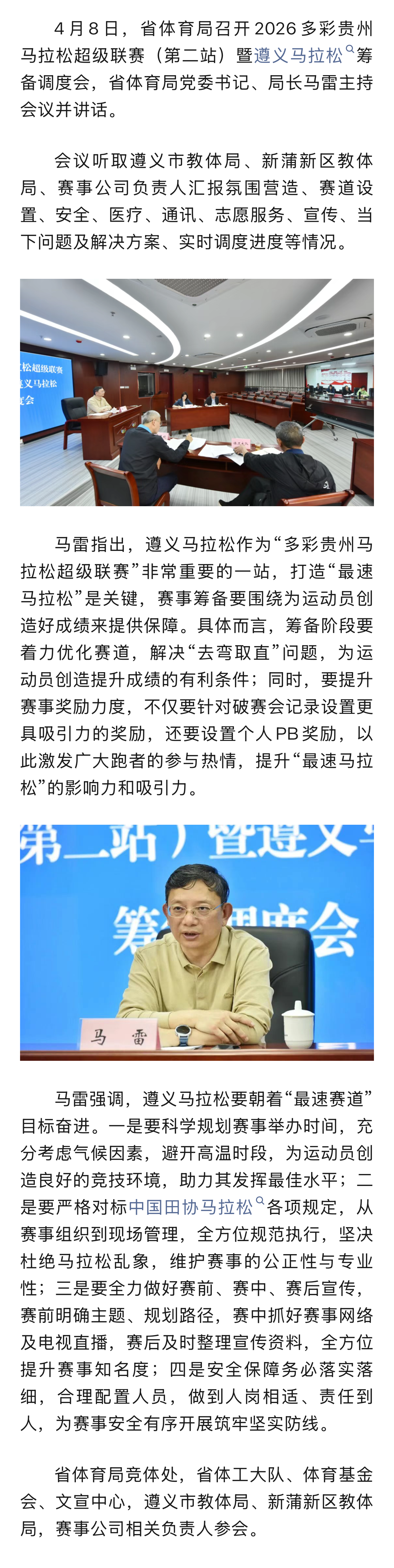 省体育局召开2026多彩贵州马拉松超级联赛(第二站)暨遵义马拉松筹备调度会